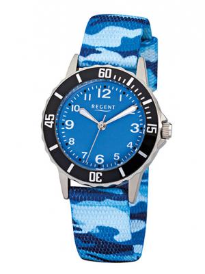 Regent F-940 Quarz Kinderuhr/Jugenduhr, Textilband, Edelstahl, digital